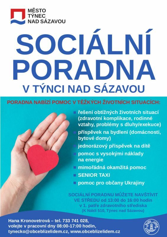 Nebojte se říct si o pomoc. V týnecké sociální poradně Vám poradí, pomůžou s vyplněním formulářů, zprostředkují pomoc.