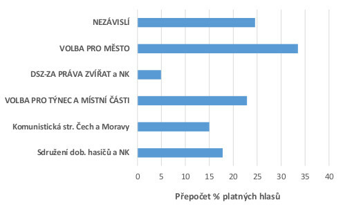 | 3 | VOLBA PRO TÝNEC A MÍSTNÍ ČÁSTI | 6 399 | 22,87 | 4 |