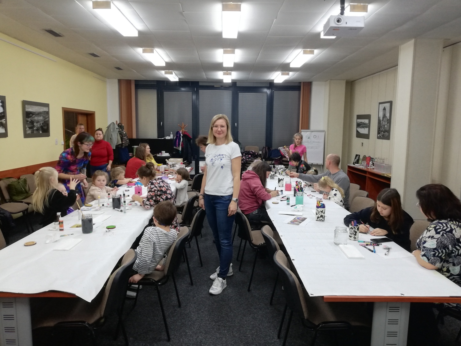 K dispozici byly vzorové ozdoby a kamínky, dřevěné výřezy, korálky k dekoraci, fixy, barvy, štětce a další pomůcky. Tvořili jsme podle vlastní představy. Domů jsme si odnesli hotovou ozdobu nebo malovaný kamínek. Martině Höhnové děkujeme za inspirativní workshop, který přinesl zklidnění v dnešní uspěchané době, a těšíme se na další setkání.