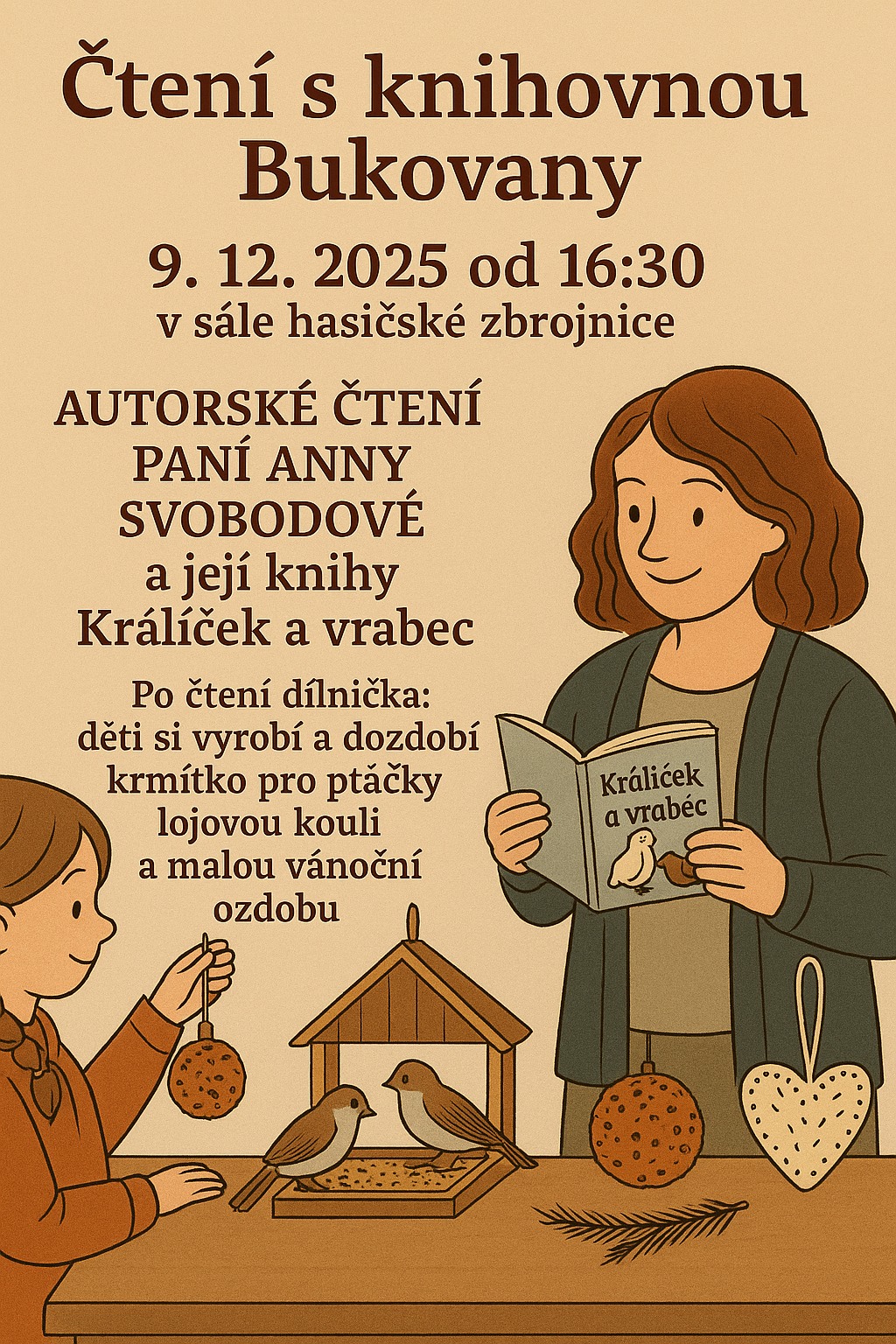Po čtení čeká děti tvořivá dílnička – ozdobí si vlastní krmítko pro ptáčky, vyrobí lojovou kouli a malou vánoční ozdobu.
